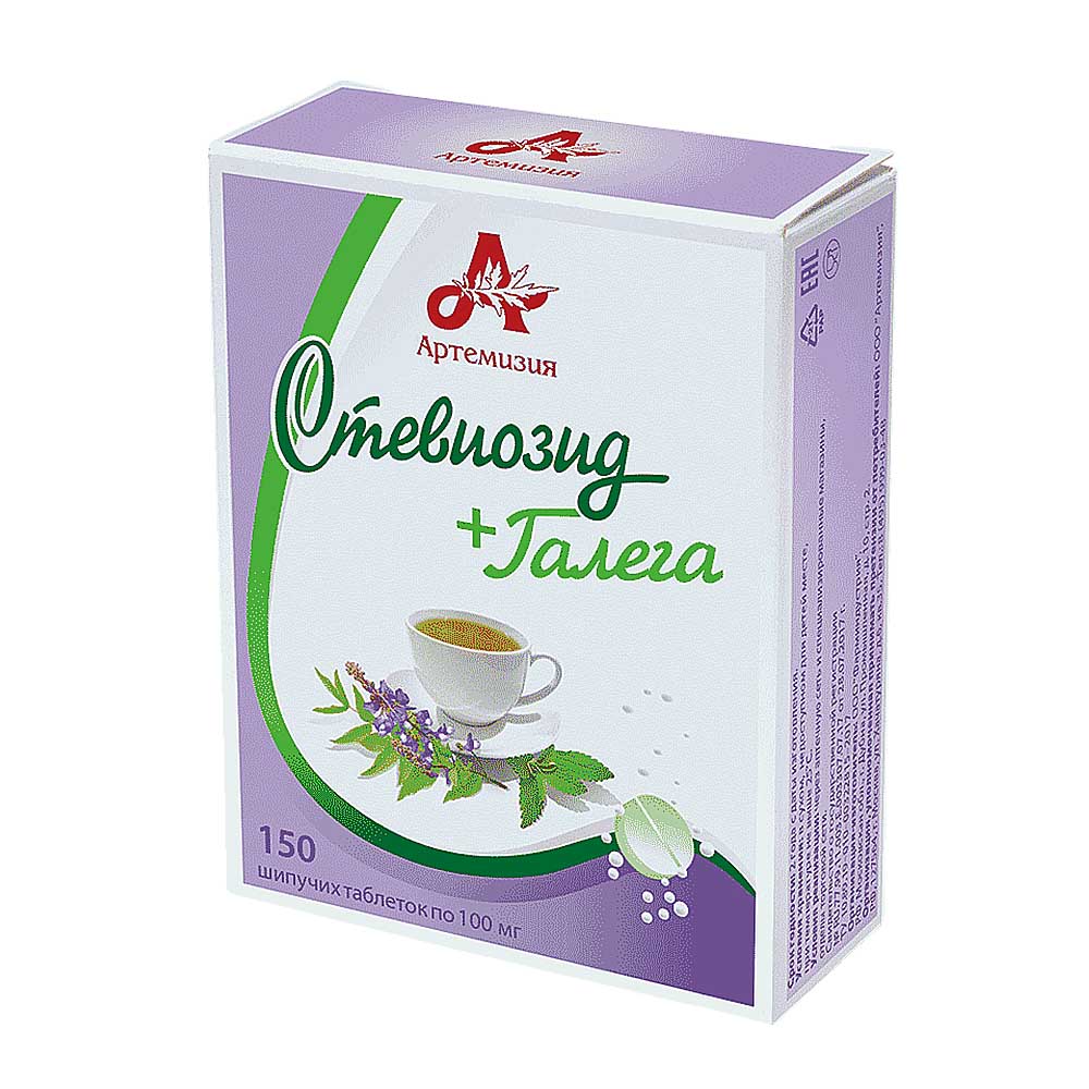 Состав: экстракт стевии стевиозид, экстракт галеги, вспомогательные вещества.