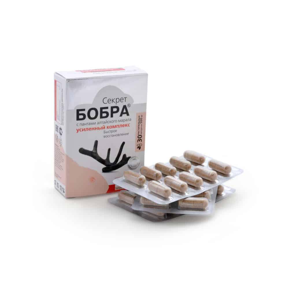 Состав: бобровая струя, медово-пантовая вытяжка, панты алтайского марала, перга пчелиная. Капсулы композиции ‘Секрет бобра’ отличаются усиленным воздействием, т.к. поступают в пищевод, где в течение 10 минут происходит растворение капсулы и высвобождение активных компонентов.