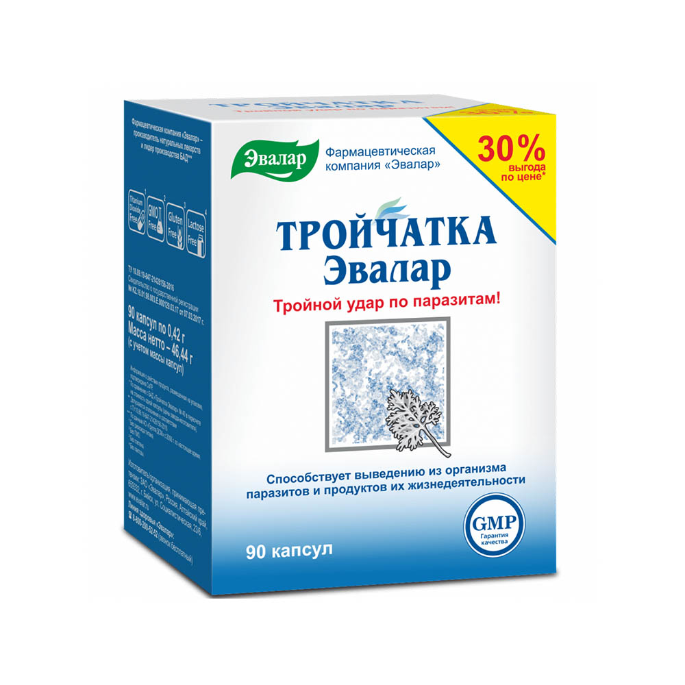 Вот уже на протяжении нескольких лет Тройчатка Эвалар по праву является абсолютным лидером среди натуральных биологически активных добавок к пище антипаразитарного действия, потому что она помогла уже миллионам россиян.