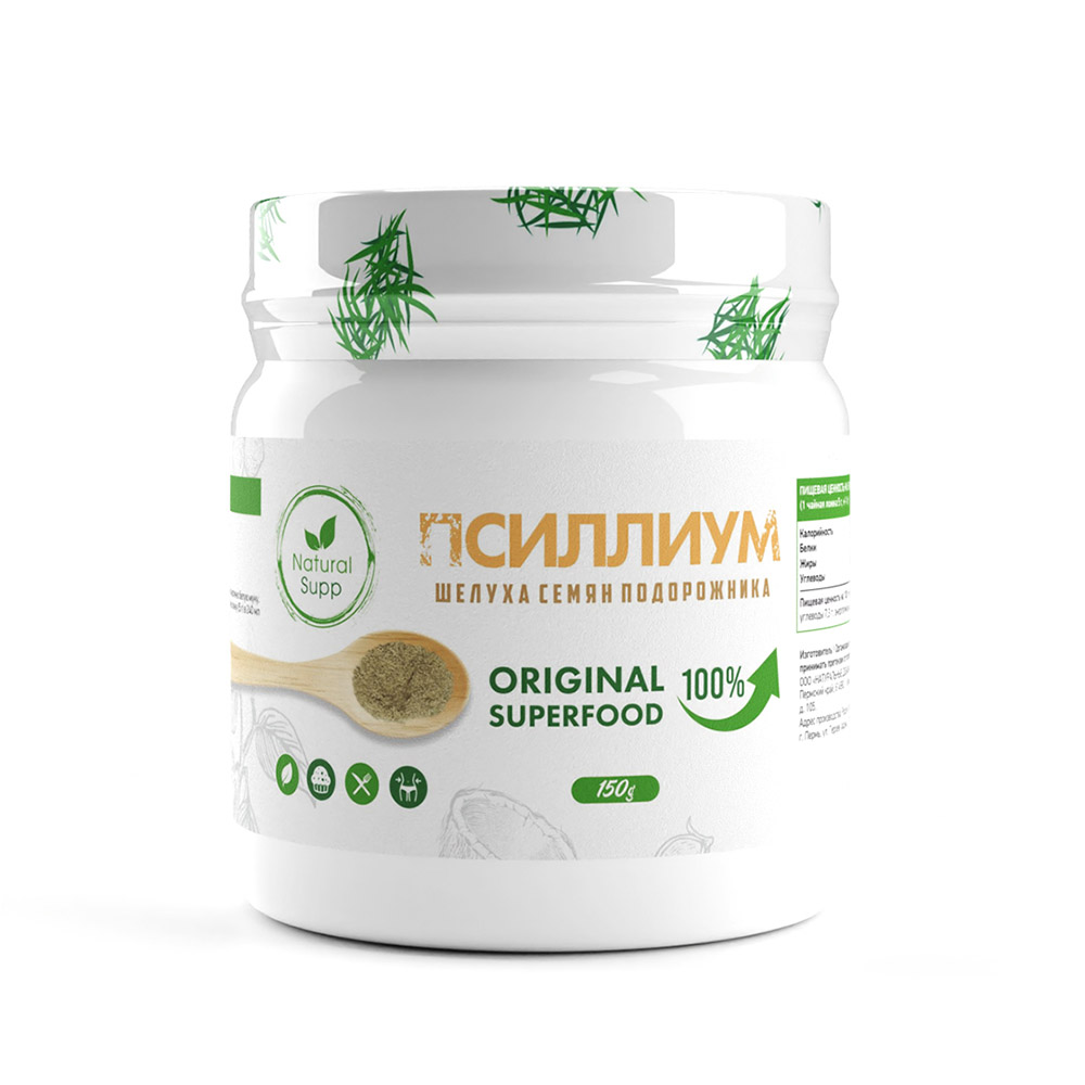 NaturalSupp Псиллиум представляет собой шелуху семян подорожника, которая крайне богата клетчаткой, жирными кислотами и аминокислотами.