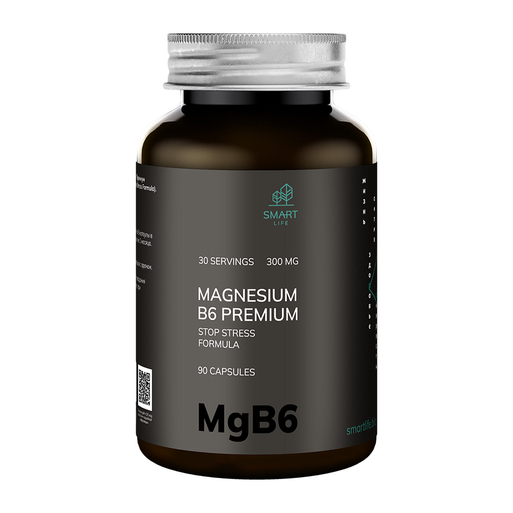 Магний В6 Премиум от Smartlife — усиленная формула для борьбы с тревожностью и стрессом. Магний в двух высокодоступных формах (бисглицинат, малат) и витамин В6 (пиридоксаль-5-фосфат) эффективно восстанавливают работу нервной системы.