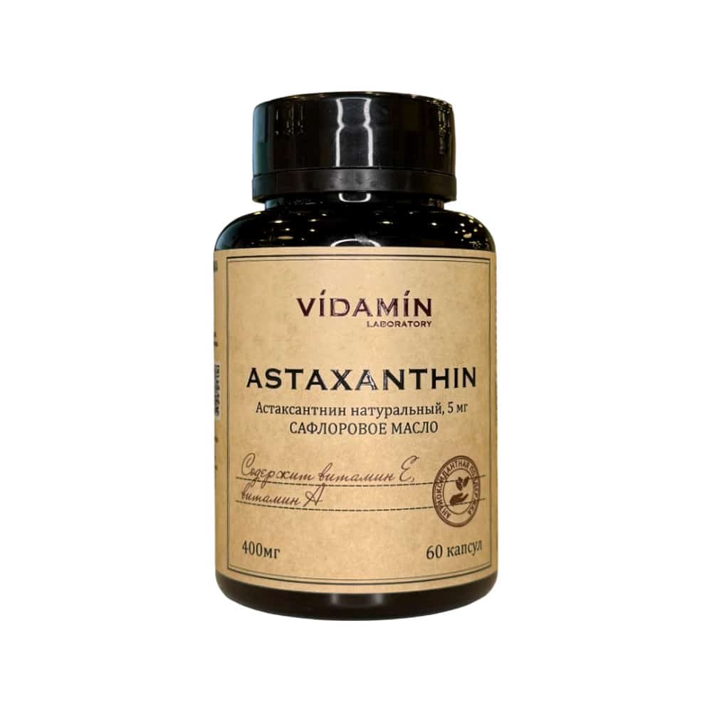 Астаксантин VIDAMIN Lab рекомендуется в качестве источника астаксантина и витамина Е и А. Снижает риск заболеваний сердечно-сосудистой системы, центральной нервной системы, желудочно-кишечного тракта, эндокринной системы, опорно-двигательного аппарата, органов зрения. Астаксантин укрепляет антиоксидантную защиту, увеличивает работоспособность и выносливость, замедляет процессы старения, повышает иммунитет.