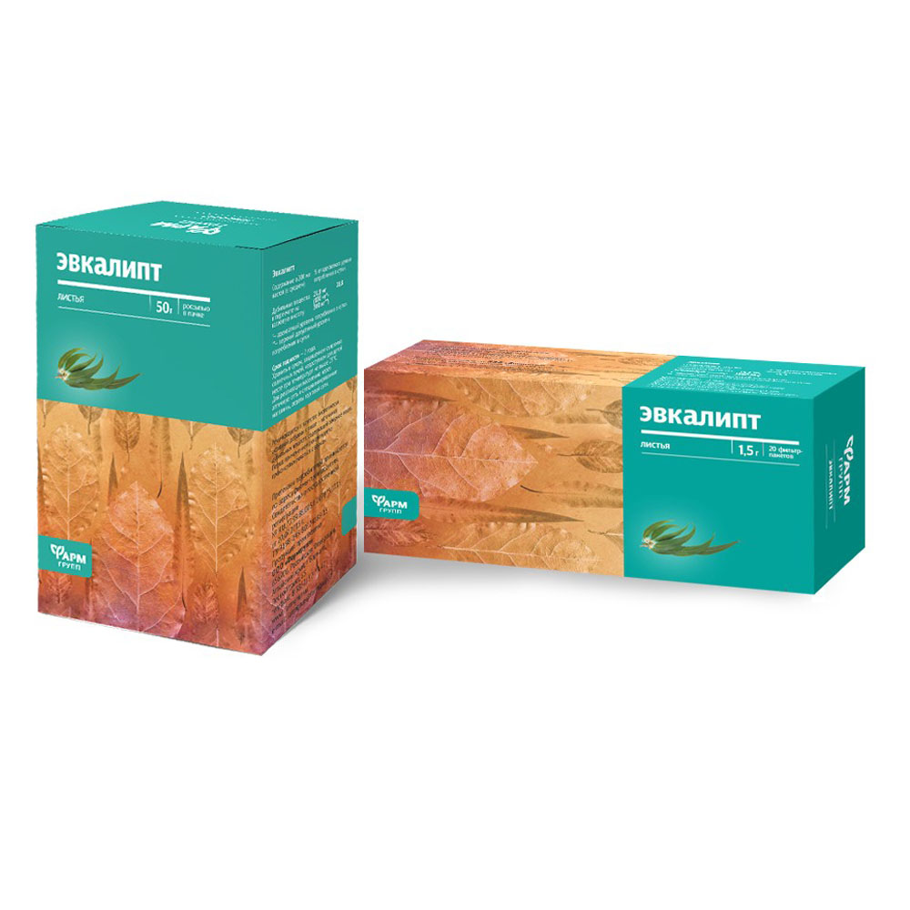 Препараты листьев эвкалипта обладают противовирусным, бактерицидным, противопротозойным, фунгицидным и противовоспалительным действием. Стимулирует процессы регенерации. Степень выраженности эффектов зависит от концентрации в препарате эфирного масла эвкалипта (0,3 — 4,5%). Основным компонентом эфирного масла является цинеола, активность которого усиливают миртенол, пинены, дубильные вещества. В ингаляциях препараты эвкалипта оказывают муколитический, отхаркивающий, бронхолитический эффекты, при нанесении на кожу антиэкссудативное, вяжущее, противозудное, анестезирующее, местнораздражающее (в более высоких концентрациях) действие. Эфирное масло вместе с дубильными веществами, органическими кислотами, микроэлементами (цинк, марганец, селен) повышает устойчивость тканей к различным гипоксиям.