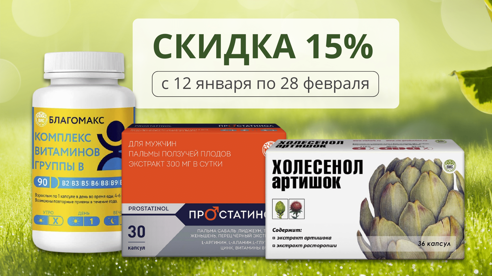 С 12 января по 28 февраля действует скидка 15% на три популярных комплекса для энергии, мужского здоровья и за...