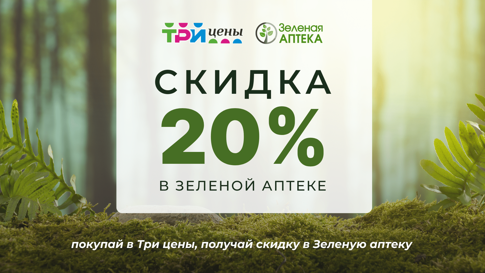 С 10 по 30 апреля совершайте покупки в сети «Зеленая аптека» и «Три цены» и получайте скидки! Как получить ски...